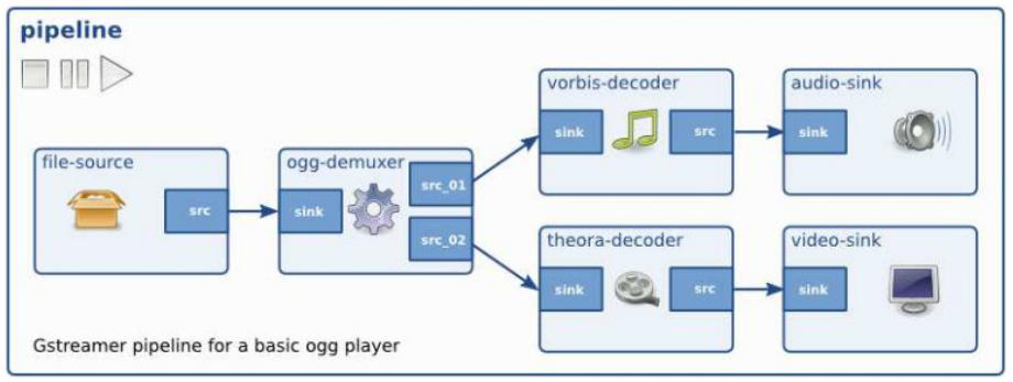 管道(pipeline)是一個特殊的bin,當設定管道暫停或播放狀態的時候,數據流將開始流動,並且媒體數據處理也開始處理。一旦開始,pipeline將在一個單獨的線程中運行,直到被停止或者數據流播放完畢。